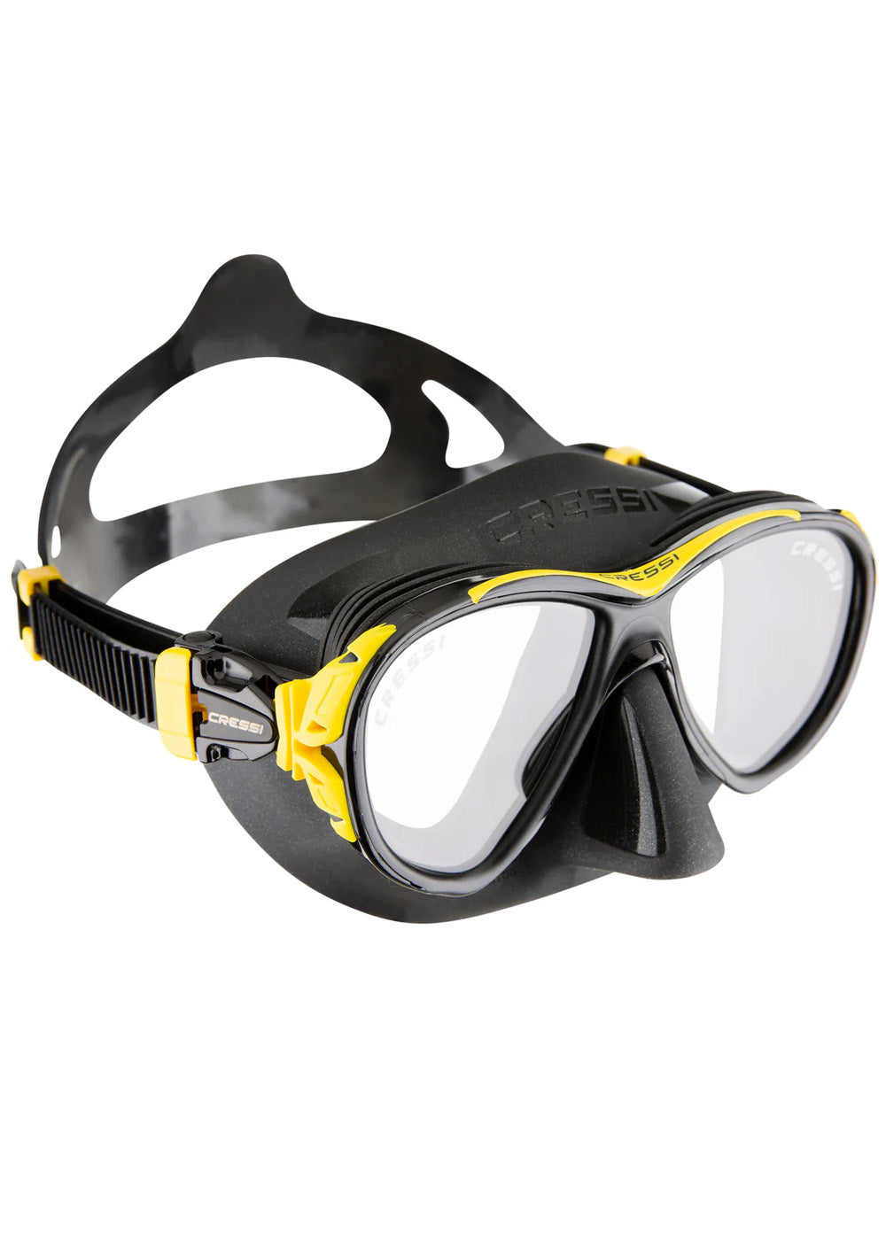 The Cressi Naxos Mask Black and Yellow is a compact, low-volume mask designed to deliver excellent visibility and advanced anti-fog performance. Smaller than traditional dive masks, the Naxos uses innovative internal ribbing to adapt comfortably to a wide range of face shapes without compromising field of view. Its thermoregulation system channels warm, moist air away from the lenses, dramatically reducing fogging during snorkelling or scuba sessions. Finished with durable tempered glass lenses and a soft silicone skirt, the Naxos offers reliable comfort and clarity in a sleek, modern profile.