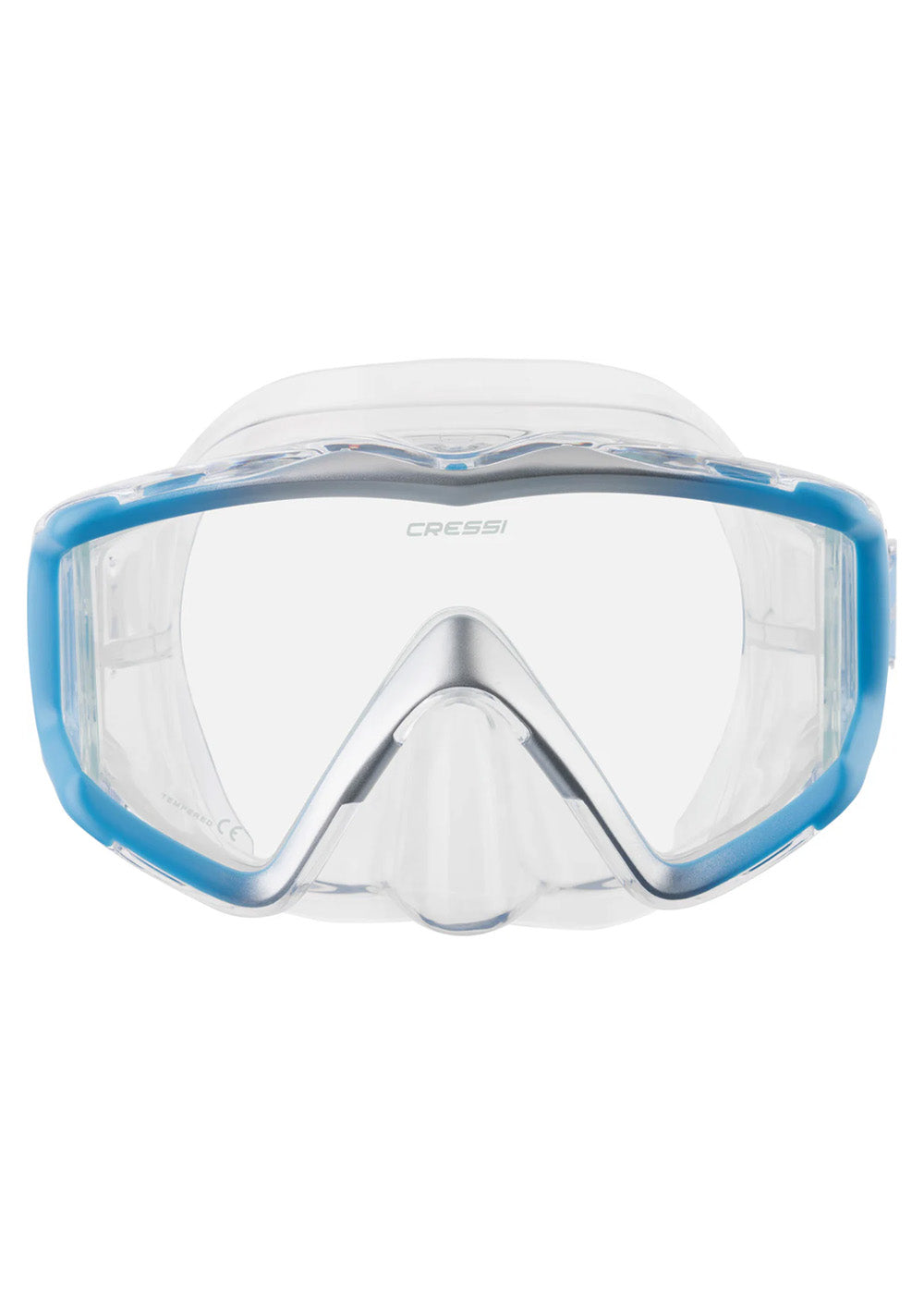 The Cressi Liberty Triside Mask Clear Blue delivers an expansive panoramic view with a sleek, low-profile design built for snorkelling and scuba adventures. Its wide mono front lens paired with dual side lenses maximises light entry and peripheral vision, creating an open, natural underwater experience. Constructed with tempered glass lenses and a soft hypoallergenic silicone skirt, the Liberty Triside provides both clarity and long-lasting comfort. With easy-adjust buckles that can be operated even while wearing gloves, this mask blends performance, fit, and style into one reliable package.